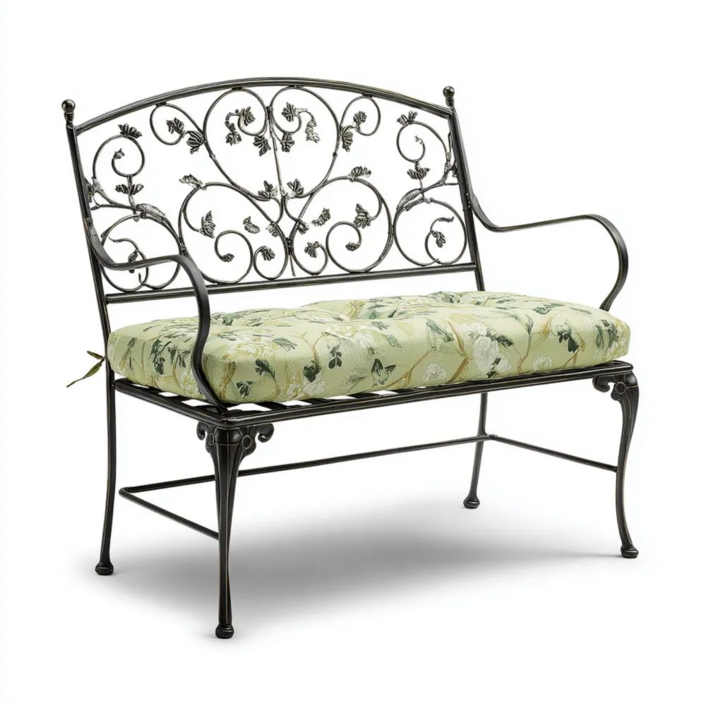 Banc de jardin en fer forgé 120x55x90 cm avec coussin – Vert clair