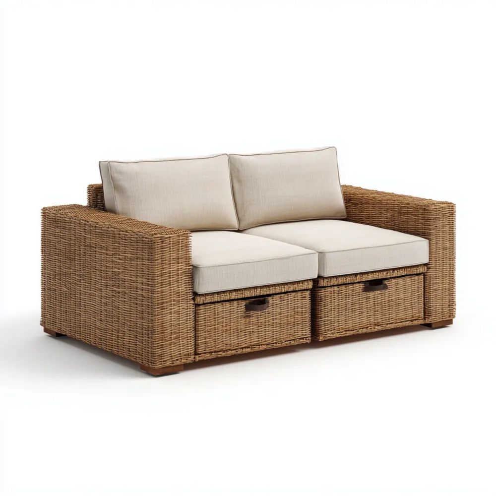 Canapé de jardin 2 places en rotin 140x85x75 cm – Beige – Rangement intégré