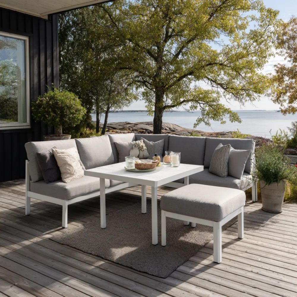 Ensemble de canapés de jardin en bois 210x210x70 cm – Lavande/Gris – Design moderne