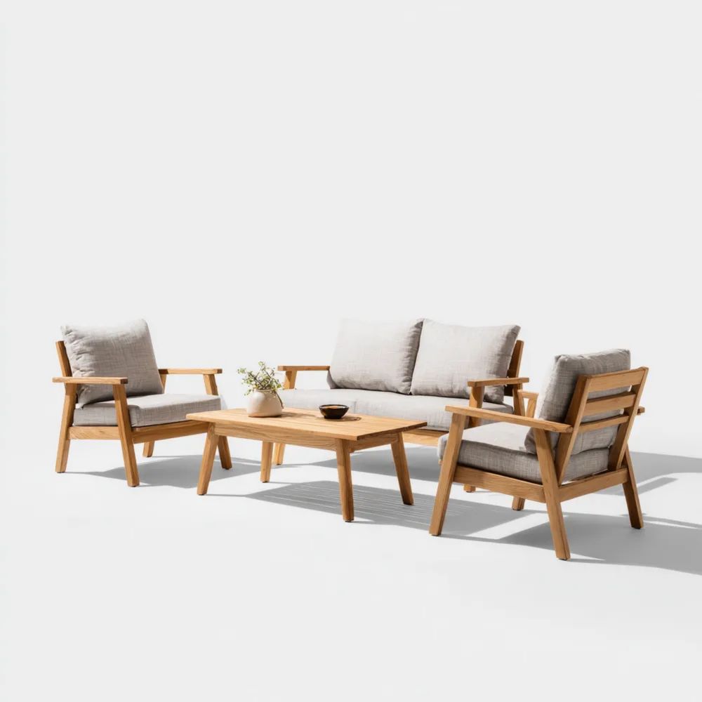 Ensemble de canapé de jardin bois 150x80x75 cm – Gris Clair – Design Moderne