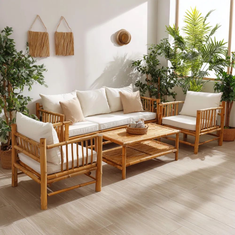 Ensemble de canapés de jardin Bambou 200x75x70 cm – Beige – Style Naturel