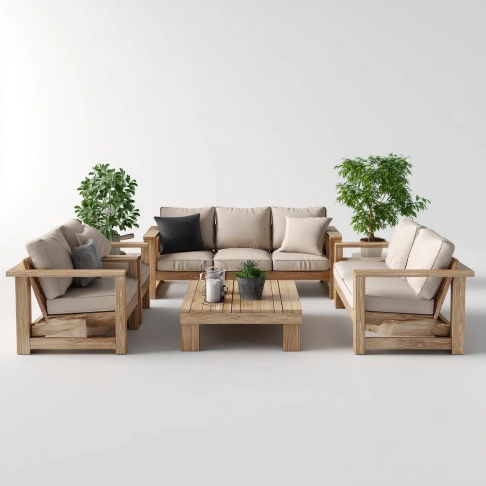 Ensemble de canapé d'extérieur 200x75x70 cm en bois Naturel avec coussins Beiges – Design contemporain